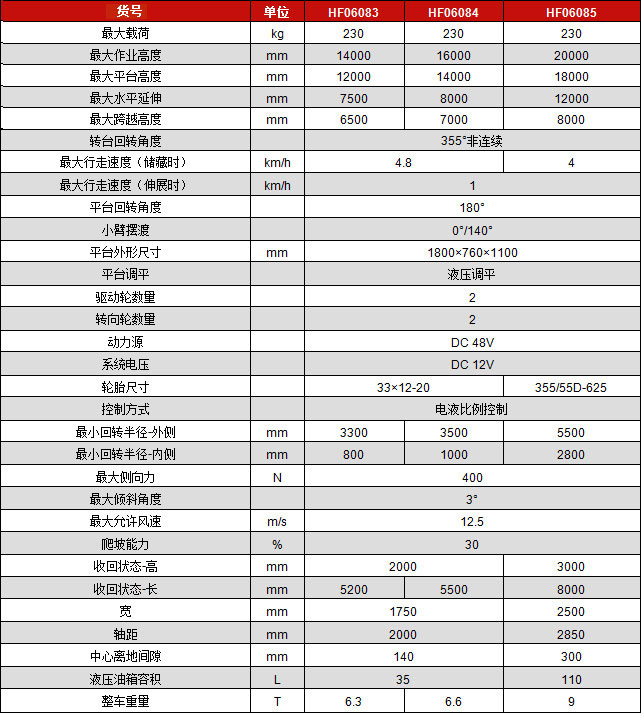 自動(dòng)調(diào)平工作平臺(tái)液壓旋轉(zhuǎn)工作平臺(tái)霍爾效應(yīng)全比例控制器行駛確認(rèn)AC電源線接至工作平臺(tái)喇叭計(jì)時(shí)器傾斜警報(bào)全時(shí)正牽引驅(qū)動(dòng)雙速行駛馬達(dá)應(yīng)急泵CAN總線智能控制超載限制選配特征2.4m平臺(tái)籃擺動(dòng)軸工作平臺(tái)旋轉(zhuǎn)門工作平臺(tái)備用杠桿焊機(jī)預(yù)接組件焊接線接至工作平臺(tái)空氣管接至工作平臺(tái)液壓油冷卻器惡劣環(huán)境套件航空防撞組件工具托盤警報(bào)套件平臺(tái)工作燈
