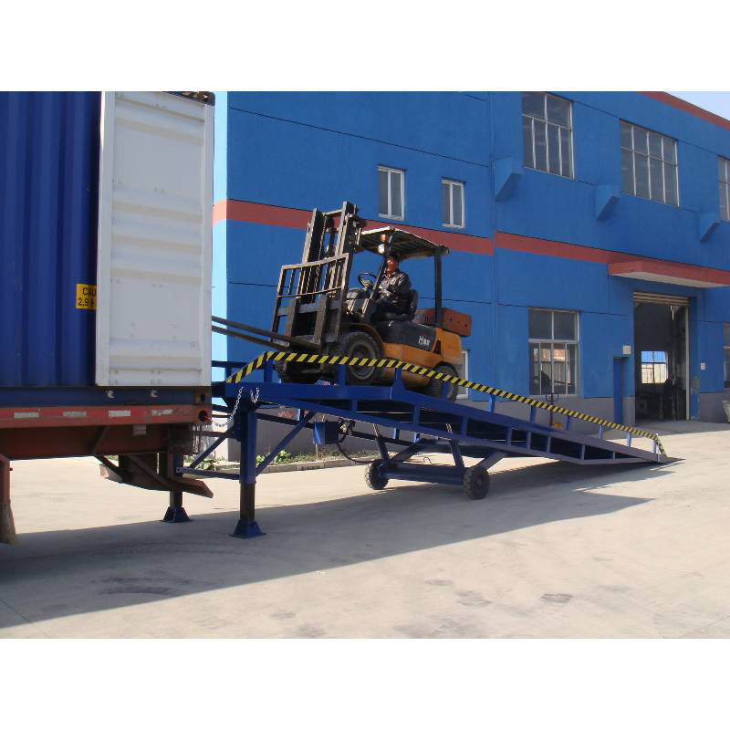 移動(dòng)式登車(chē)橋廣泛用于無(wú)裝卸設(shè)備的貨臺(tái)及流動(dòng)裝卸場(chǎng)所,是與叉車(chē)配合使用的貨物裝卸輔助設(shè)備。借助移動(dòng)式登車(chē)橋,叉車(chē)能直接駛?cè)肫?chē)集裝箱內(nèi)部進(jìn)行批量裝卸作業(yè)。只需單人操作,不需動(dòng)力電源,即可實(shí)現(xiàn)貨物的安全快速裝卸
